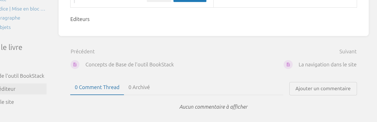 BookStack ne propose pas comme la plupart des sites un menu/sous-menus en haut de la fenêtre de navigation .